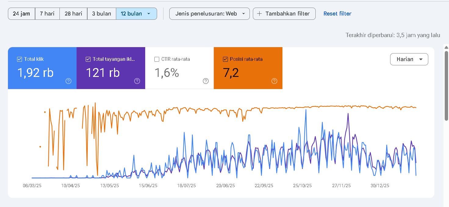 Awalnya dalam sebulan bahkan hampir dua bulan awal tidak ada traffic sama sekali. Padahal saya sudah bersusah payah mengetik manual tidak menggunakan chatgpt untuk menulisnya, semuanya murni dari isi kepala saya dengan beberapa referensi.